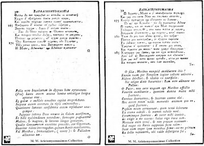 Das über zweitausend Jahre alte homerische Epillion, das im Original nur etwa 300 Verszeilen umfasst, wurde von R.W. A., der zehn Jahre lang daran gearbeitet hat, zu einem Mammutwerk aufgebläht, das die Batrachomyomachia mit der Ilias und der Bibel verbindet.