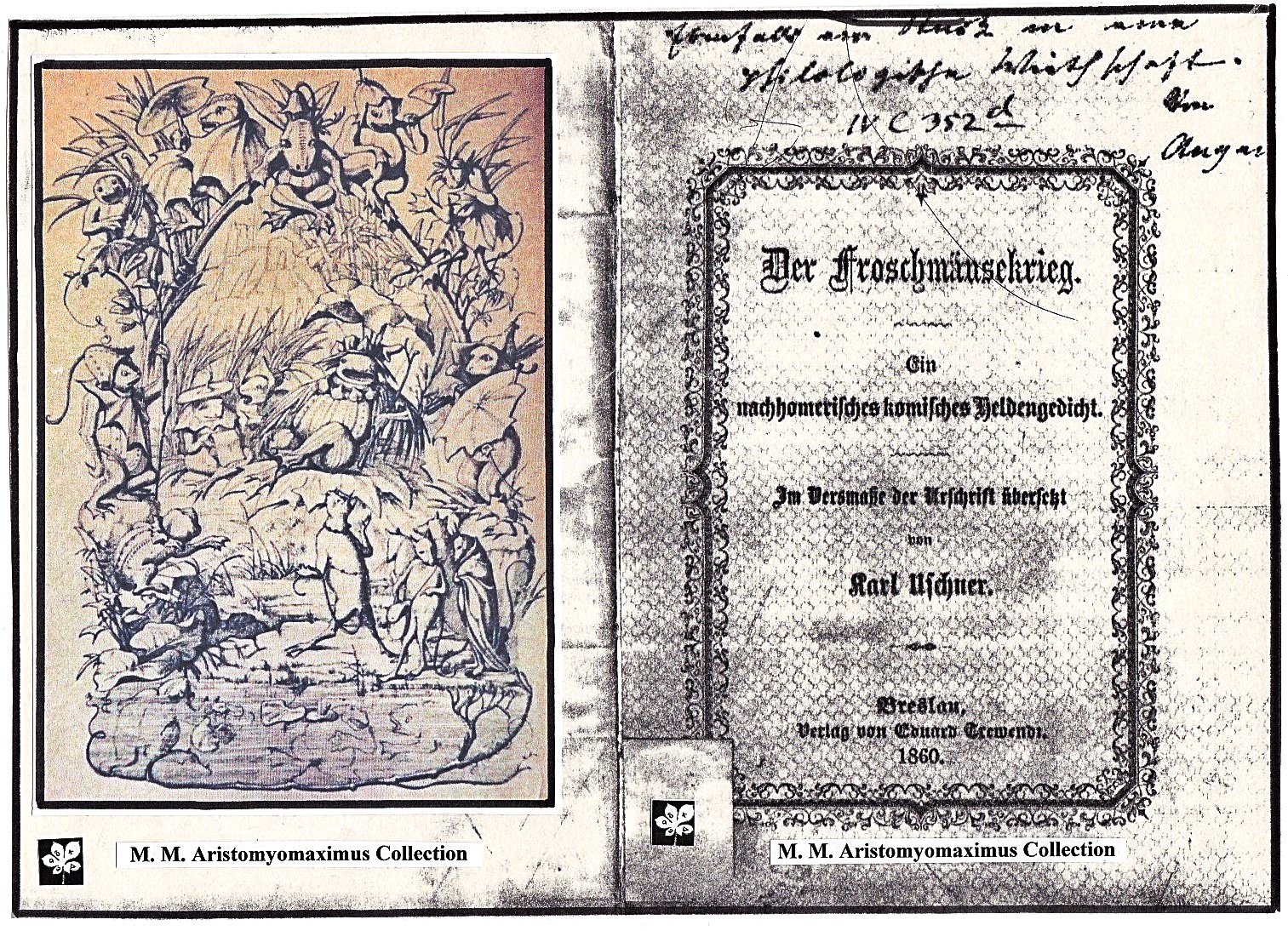 Das über zweitausend Jahre alte homerische Epillion, das im Original nur etwa 300 Verszeilen umfasst, wurde von R.W. A., der zehn Jahre lang daran gearbeitet hat, zu einem Mammutwerk aufgebläht, das die Batrachomyomachia mit der Ilias und der Bibel verbindet.